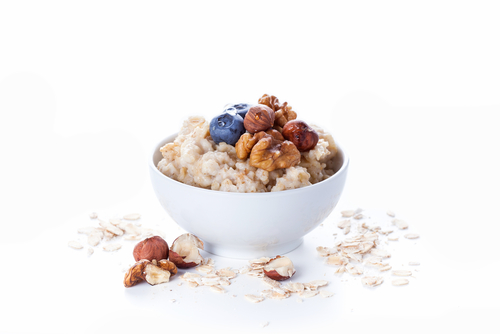 Servir dans un bol, et ajoutez des noix, amandes, pistaches, noisettes, noix de cajou, noix de pécan que vous aurez de préférence laissé trempé quelques heures/nuit.