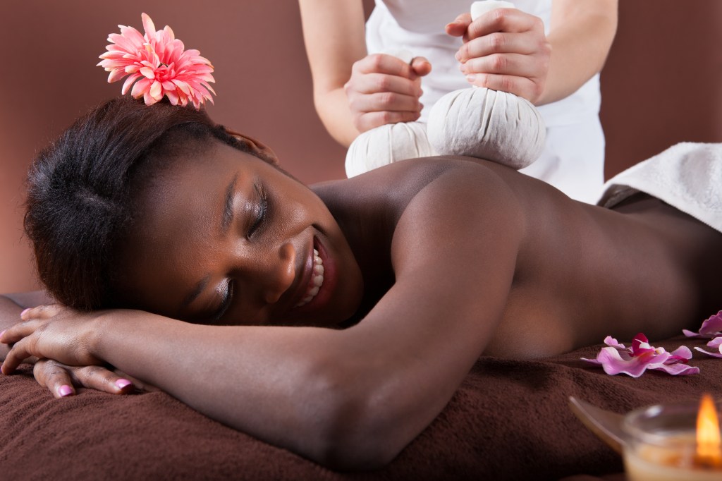 Le corps entier est massé à l’aide des pochons de coton remplis de riz, d’herbes et de plantes médicinales afin d’éliminer les toxines.